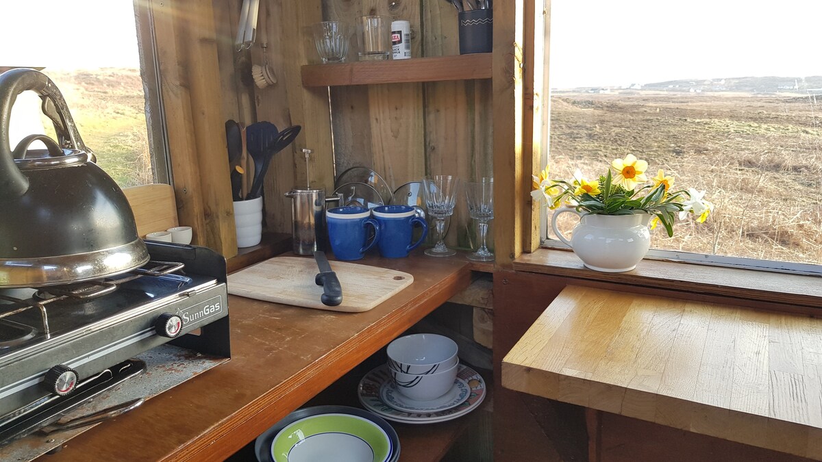 ¡Escápate por un tiempo a nuestra cabaña de camping fuera de la red en un lugar secreto! Experimenta estar en la naturaleza, con el lujo de una estufa de leña y una cama súper cómoda. Observa cómo se pone el sol detrás de colinas lejanas y los ciervos pasan al amanecer. Apaga el teléfono, disfruta de la paz y la soledad. La base perfecta para explorar Mull e Iona. Interior aislado con paneles de madera. Estufa de leña. Cama doble. Ropa de cama y toallas. Cocina y cabina de ducha separadas. Inodoro de compostaje separado. Cocina.