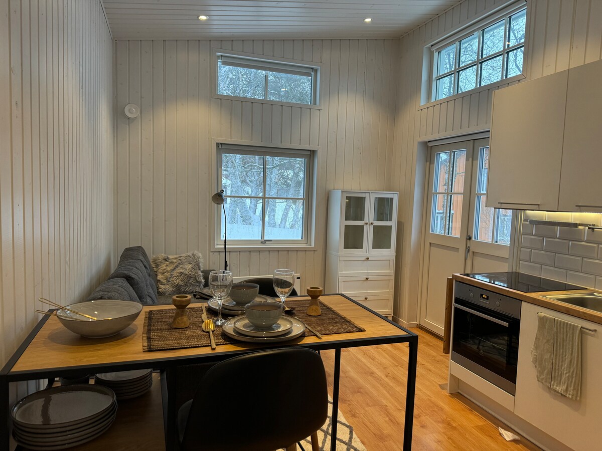 Apartamento para huéspedes en una casa de patio construida en 2022 con un alto factor de comodidad. En la planta baja hay un vestíbulo, un aseo y una ducha. En la planta superior hay una cocina totalmente equipada (placa de inducción, microondas y nevera) y dos dormitorios, uno con dos camas de 80 cm y el otro con dos camas de 70 cm, que se pueden juntar para formar camas de matrimonio. Sofá y TV en uno de los dormitorios. Espacio de oficina para conectar el ordenador a la pantalla y wifi. Bonito terreno de senderismo detrás de la casa con camino hacia Helgesjön (2 km) y camino para motos de nieve hacia la mina Fröå (8 km).