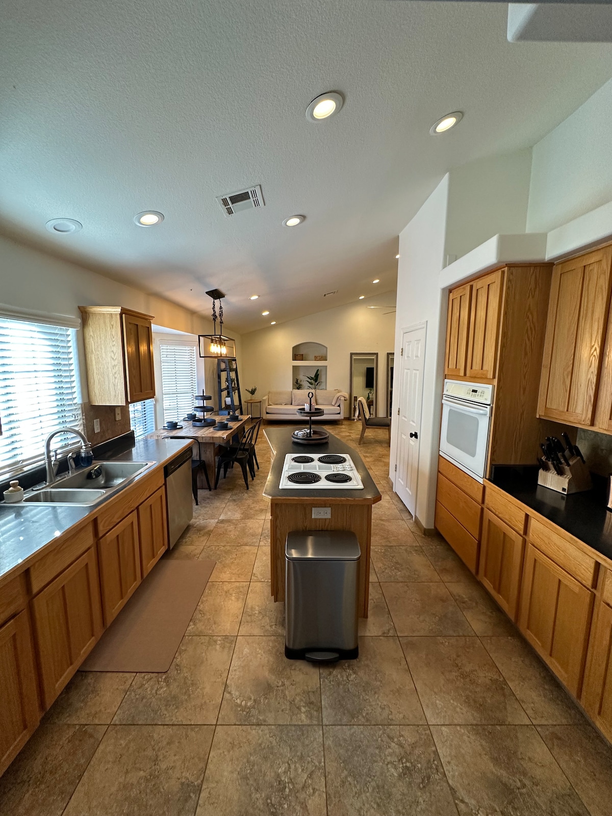 Make yourself at home in this spacious 3-bedroom, 2-bath home in the San Tan Valley. The open concept space is full of light with a large kitchen and living room, perfect for groups of up to 6. Keypad entry provides easy check-in. Southeast of the greater Phoenix/Mesa metropolitan area, there is quick access to hiking, golf, biking... but still close enough for your dining and shopping pleasure. Take in the open spaces of the Arizona landscape while still being close to urban attractions