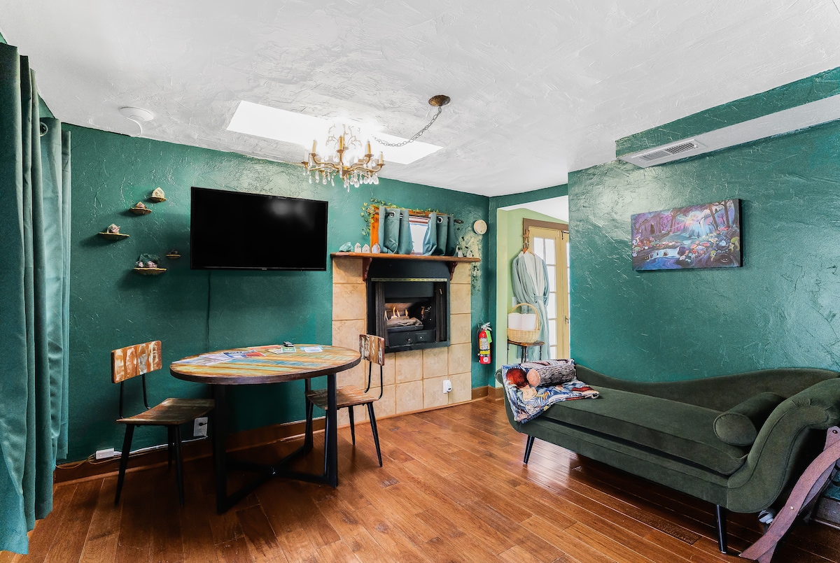 ¡Entra en un reino de tranquilidad donde la magia te espera a cada paso! Nuestra cabaña Enchanted Forest te invita a relajarte en medio del abrazo de la naturaleza, con un suelo de roca de río natural y una cama de hongos caprichosos hecha a mano por el propio Doug Schenck de Denver. Ya sea que busques consuelo después de un espectáculo de Red Rocks o una escapada serena, deja que el encanto de nuestra cabaña te envuelva con su hechizo. Reserva ahora y descubre el santuario perfecto para crear recuerdos y cuentos que durarán toda la vida.