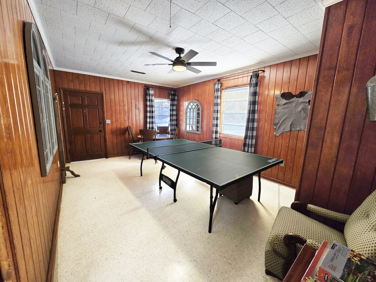 Take it easy at this unique and tranquil getaway located on 100 acres and nestled quietly on a private pond. The house was originally built in 1921 and in 2018 we had the house moved down to the pond and did a full renovation while preserving as much original character as we could. Enjoy your morning coffee and watch the sunrise from the screen porch swing or one of the docks at the pond. The property has nature trails to explore, fishing, and plenty of wildlife.