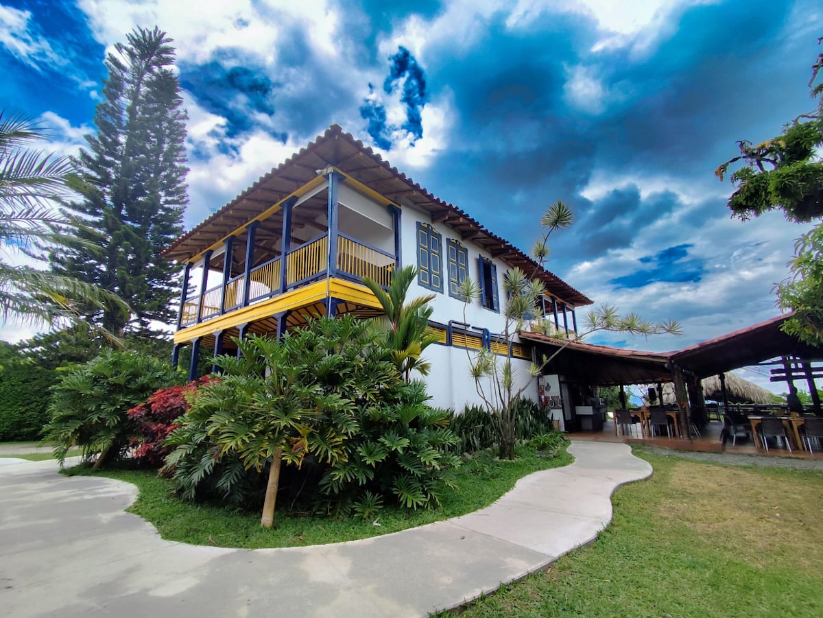 Nuestro Hotel, de arquitectura antioqueña propia de la región, se encuentra ubicado en Montenegro, Quindío, a 800 metros del Parque Nacional de Café y a 20 kilómetros de PANACA (principales parques temáticos de Colombia). Está dotado de 20 habitaciones con capacidad para 70 personas, piscina, kiosko, restaurante, hamacódromo y parqueadero. Las habitaciones cuentan con baño privado, agua caliente, ventilador de techo, mini-bar, WIFI y TV LCD y Smart. Danos el gusto de atenderte!