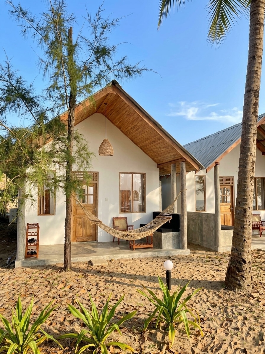 This beautifully designed wooden room offers a warm and relaxing atmosphere, perfect for surfers, couples, and travelers looking for comfort and tranquility. The room features a high wooden ceiling, stylish lighting, and handcrafted wooden interiors, creating a cozy tropical experience while still providing modern comfort. Guests can enjoy a spacious bedroom, a comfortable king bed, air conditioning, and a private attached bathroom with hot water.