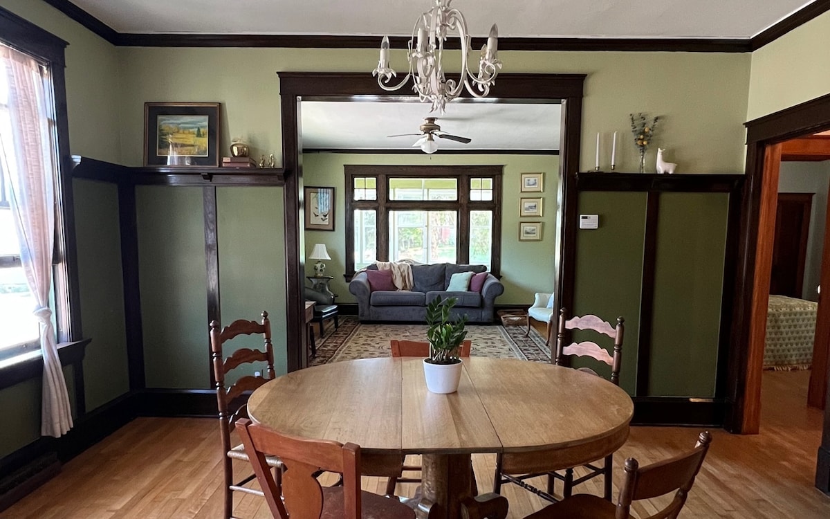 Hermosa casa construida en 1930. Ahora recientemente remodelado con 4 dormitorios y 2 baños completos. Ubicado a 7 cuadras del centro de Ironwood. Una cama king y 3 camas queen. Barrio tranquilo. Gran punto de lanzamiento para cualquier actividad local. Pistas de esquí nórdico a menos de 4 millas de distancia; esquí alpino, raquetas de nieve, ciclismo de carretera y montaña, kayak y senderismo están muy cerca. Llegada autónoma, pero siempre disponible para recibir ayuda. Lo sentimos, no se admiten mascotas y no se permiten eventos/fiestas.