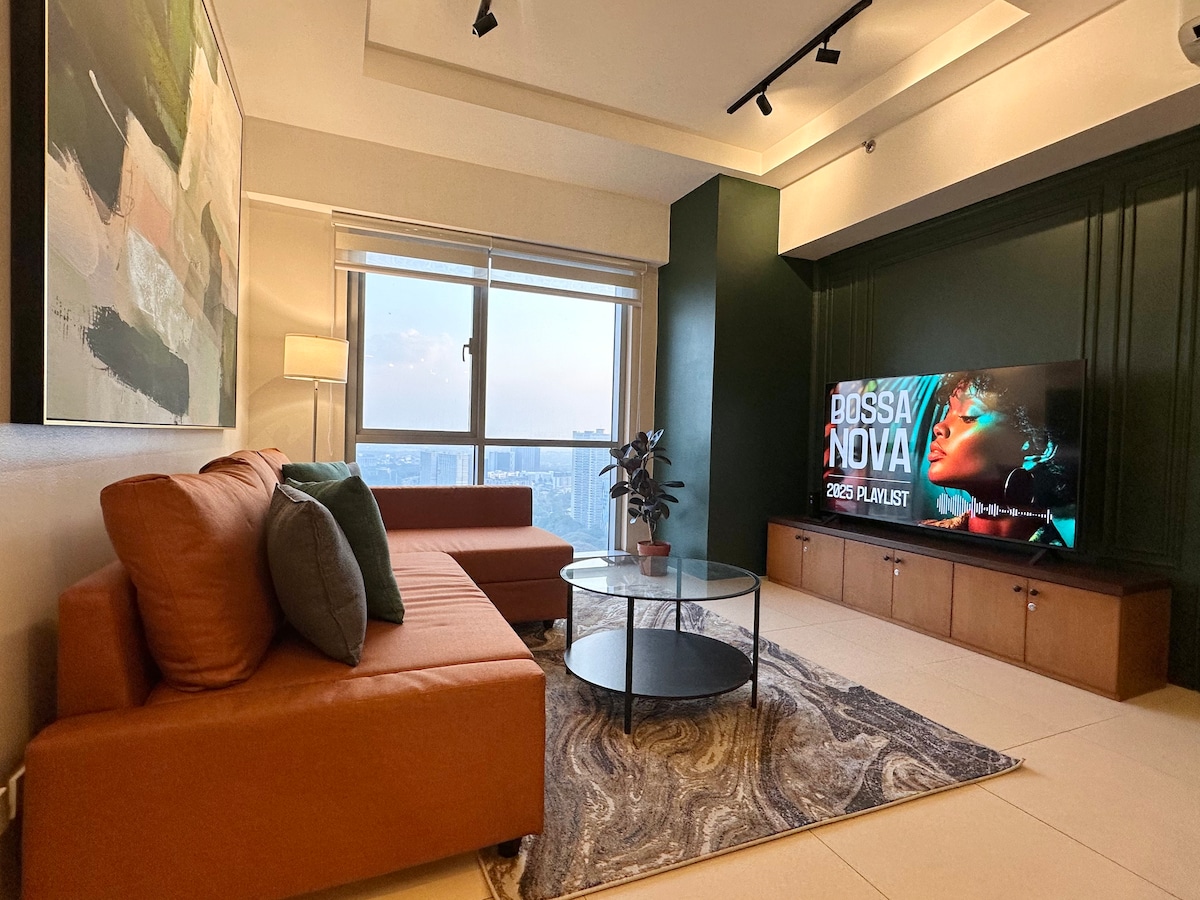 Amplio oasis de 1 habitación en BGC con TV de 65”, lavadora/secadora e Internet de 400 Mbps