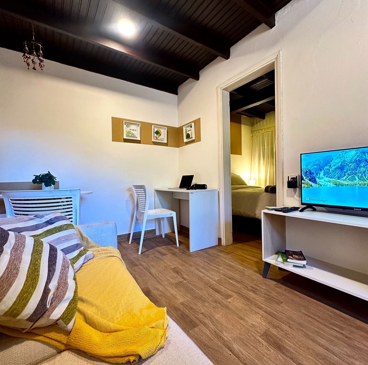 Casa Colonial renovada manteniendo la estructura original, probablemente construida hace mas de 100 años, dormitorio pequeño living y galería, cocina con equipamiento completo para que puedas preparar lo que desees, hospedarte aquí te transporta a un lugar inesperado en el tiempo, un hogar antiguo y confortable que no sabias que tenias en el casco histórico de Asunción. Acc Split frio/calor, TV cable y dos lineas de Wifi para estar conectado todo el tiempo.