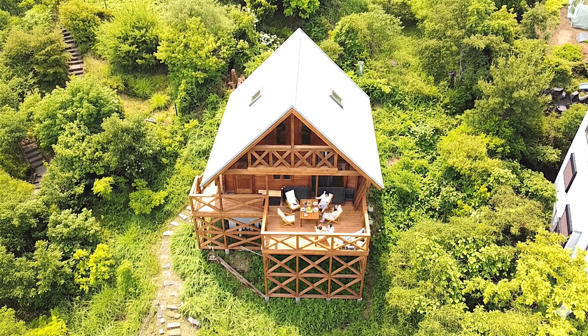 Private Log-house with ocean view and hot spring