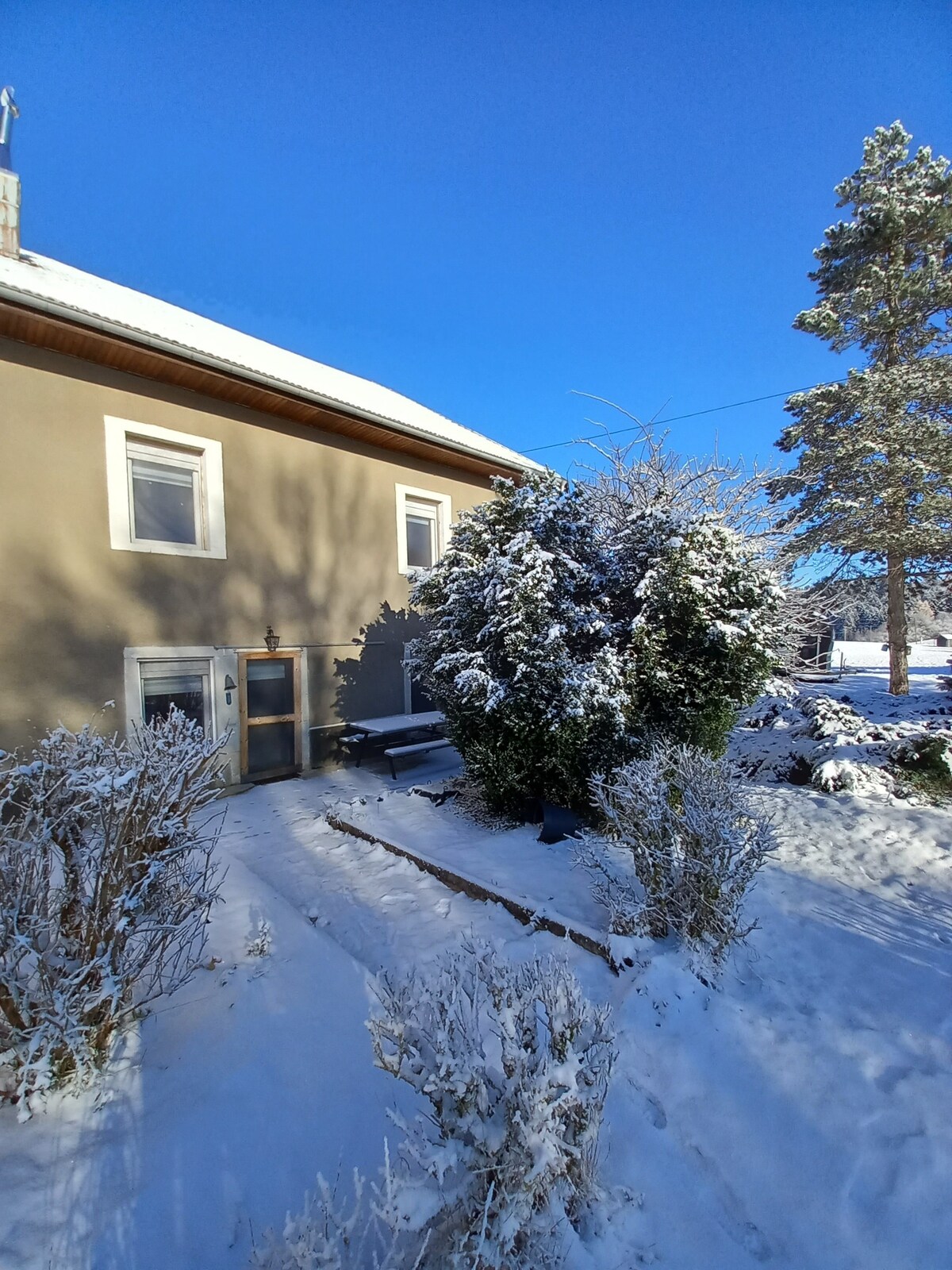 En una granja de 1700, la casa rural atemporal le ofrece un entorno idílico. Capacidad para 6 personas (2 habitaciones dobles y un sofá cama), la casa está totalmente equipada(cocina, baño). Su terraza de 40 m2 con su spa de 6 plazas le ofrece una vista sin vecinos. Comercios a menos de 10 minutos. Ideal para relajarse, las pistas de trineos al pie de la terraza harán las delicias de niños y mayores.