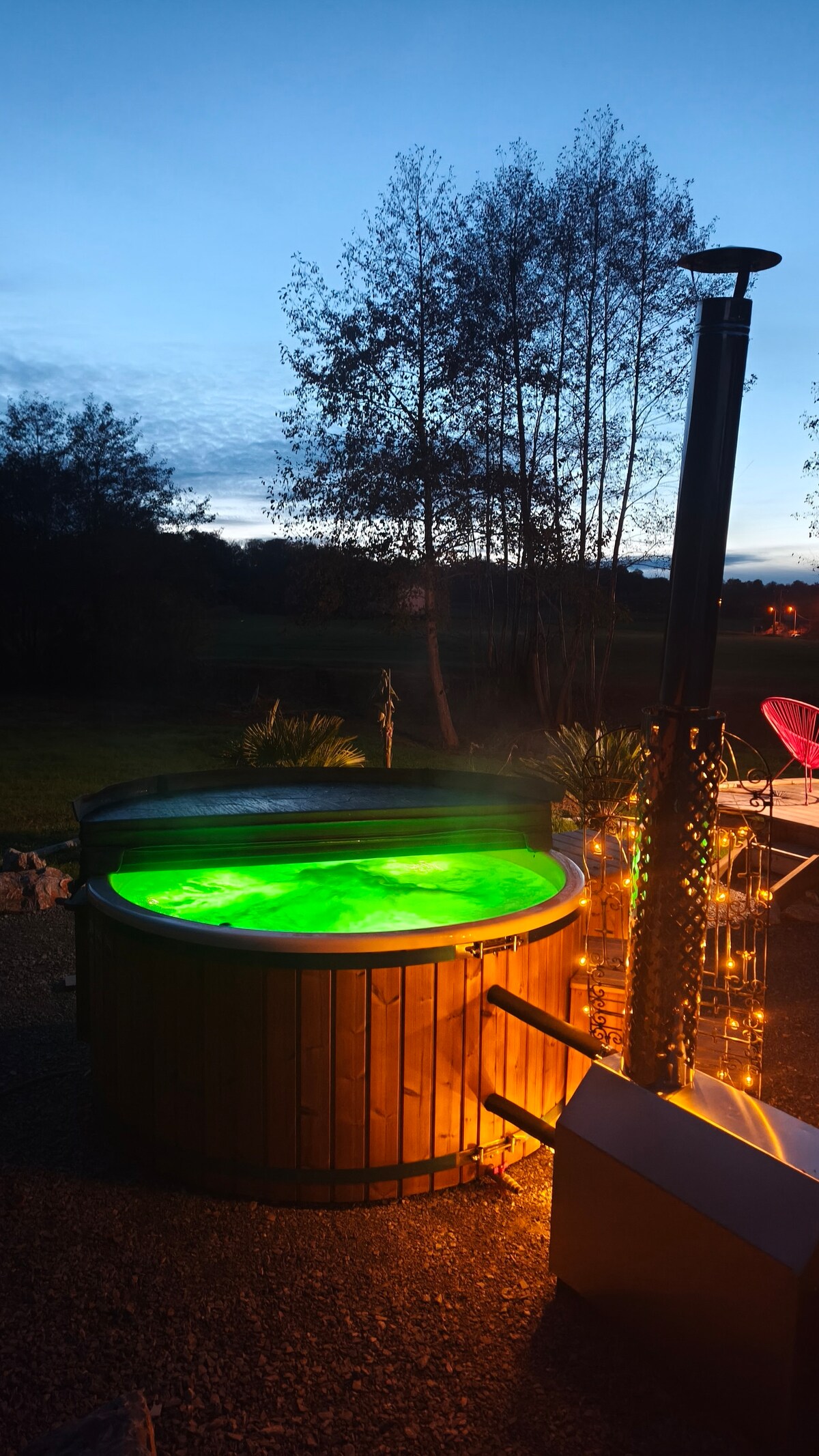 Venga a disfrutar de una escapada inusual en este paraíso verde y atípico con vistas a los Pirineos y a la ciudad de Lourdes. El autobús ha sido acondicionado con un espíritu cálido y acogedor. Hay una cama de 140x200, una cocina con fogones, fregadero, nevera, una estufa y un baño con ducha e inodoro. Puede disfrutar del baño nórdico con un suplemento de 40 € al día, pero también de los masajes en L'Empreinte de Joy. Se accede al autobús por un pequeño sendero 🌲