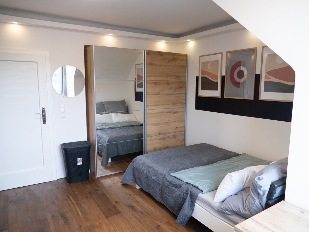 Tu apartamento/departamento se encuentra en una zona verde con su propio pequeño jardín y, de hecho, está muy cerca del centro de la ciudad. Estás en el centro de la ciudad en 15 minutos con transporte público. El apartamento te espera recientemente renovado y con mucha atención al detalle