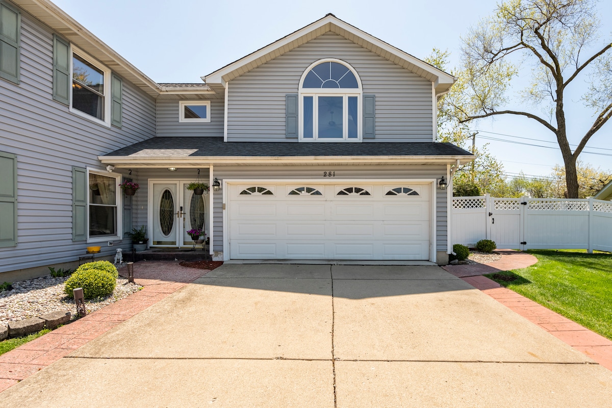 Hermosa casa de 5 dormitorios y 2,5 baños en Glen Ellyn, ¡totalmente amueblada con todo lo necesario para una estancia maravillosa! Situada en los tranquilos suburbios de Glen Ellyn, la zona es perfecta para familias o amigos que quieran disfrutar de una escapada cómoda. Situado a 40 minutos del centro de Chicago y del aeropuerto Midway y a 30 minutos del aeropuerto O'Hare. Situado cerca de las principales carreteras y centros comerciales. ¡Patio trasero grande, privado y completamente cerrado, perfecto para que los niños jueguen o para una noche relajada de barbacoa!