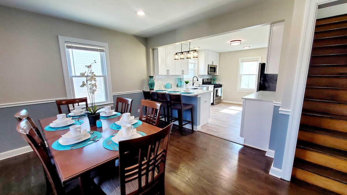 Escápate a esta hermosa y tranquila casa de 4 dormitorios y 2 baños totalmente remodelada. Un espacio increíble que realmente ofrece una experiencia fantástica a los huéspedes. Capacidad para 9 personas. Dormitorios: 2 camas tamaño king, 1 cama tamaño queen, 2 camas completas y 1 cama individual. Televisores inteligentes. La casa tiene todo lo necesario. Planta abierta con cocina totalmente equipada donde puedes cocinar y crear experiencias con familiares y amigos. Gran patio trasero con patio. Aparcamiento para 3 coches. Excelente ubicación. A poca distancia a pie del río Fox, restaurantes, tiendas, panadería, canchas de tenis, senderos y parques.