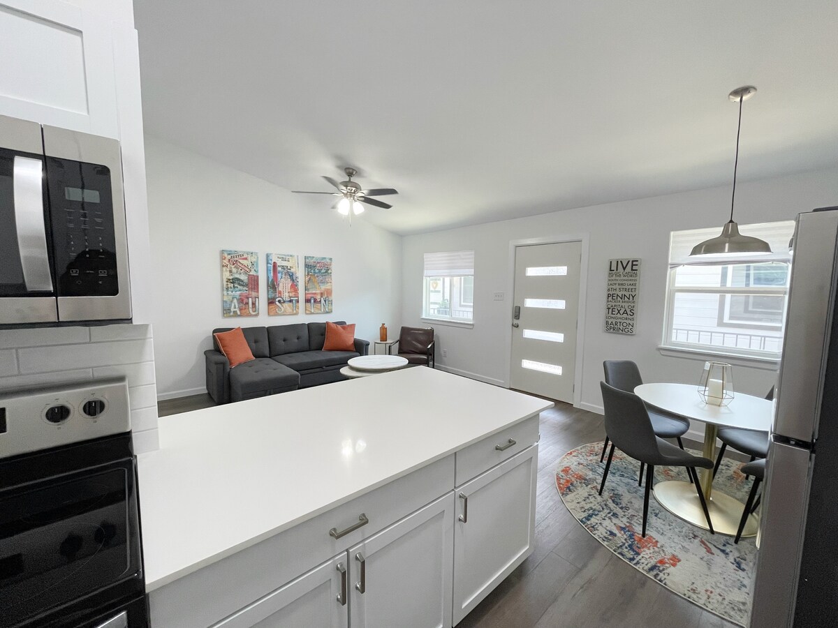 🌊☀️Bienvenido a The Water Sol, su tranquilo refugio en Austin. Este refugio iluminado por el sol combina la comodidad moderna con el encanto natural, ofreciendo el equilibrio perfecto entre la energía de la ciudad y las vibraciones tranquilas. Relájate en el acogedor dormitorio, cocina en la cocina totalmente equipada o toma un café en el patio privado de Juliet. Con interiores elegantes, ropa de cama lujosa y una ubicación privilegiada cerca de los mejores lugares de Austin, es el refugio perfecto para relajarse, explorar y crear recuerdos duraderos.