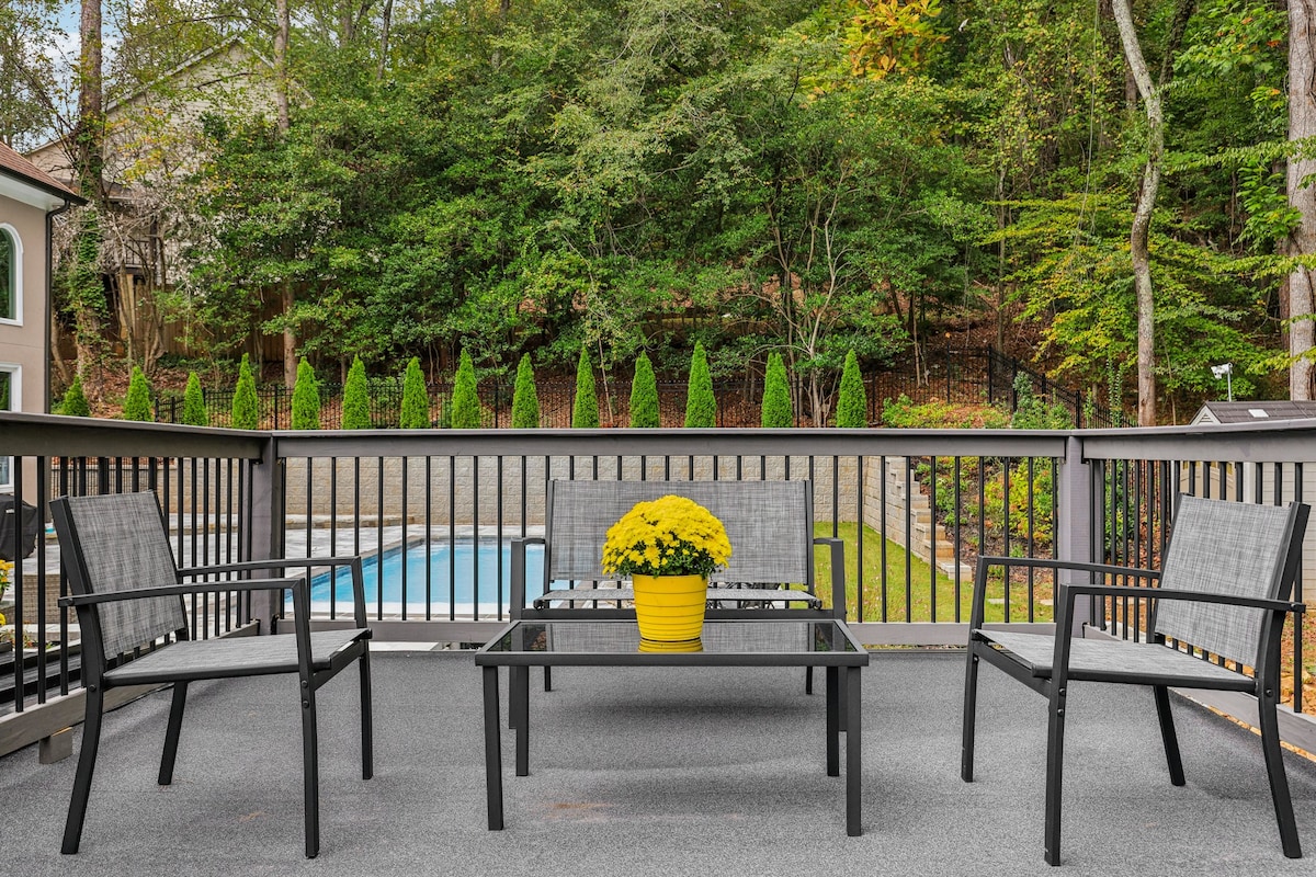 A POCA DISTANCIA A PIE DEL CENTRO DE ALPHARETTA Esta casa RECIÉN renovada es la opción perfecta para aquellos que buscan una estancia cómoda y conveniente. Tendrás fácil acceso a los mejores restaurantes, tiendas y entretenimiento de la ciudad a poca distancia. Nuestro alojamiento cuenta con: - Cocina totalmente equipada: nuevos electrodomésticos Samsung y Nespresso. - Habitaciones cómodas: camas King y Queen con ascensores. - Oasis al aire libre: gran patio trasero con parrilla y fogata - Entretenimiento: televisores inteligentes o Apple TV en todas las habitaciones. Cornhole y juegos de mesa.