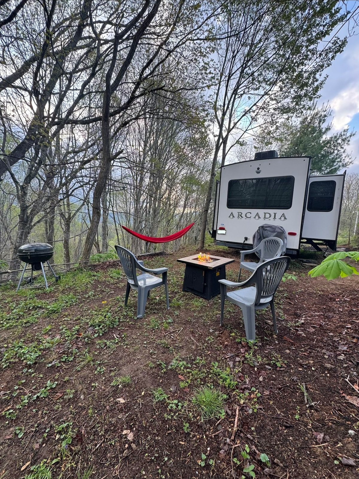 ✨Mountain Glamping experience. 36 ft RV on 7 acres near beech mountain. 🏔️Enjoy a king bed, pull-out king sofa, bedroom & living room TVs, full-sized shower and full fridge. Remote and peaceful, yet close to Beech Mountain, Sugar Mountain, Boone, Watauga Lake, and Sugar Hollow. View’s from kitchen window. ✨Perfect for romantic getaways, special celebrations or a mountain reset. Late arrivals enjoy frozen pizza. 🏔️🛶Inflatable kayak available for rent for Lake Watauga message host.