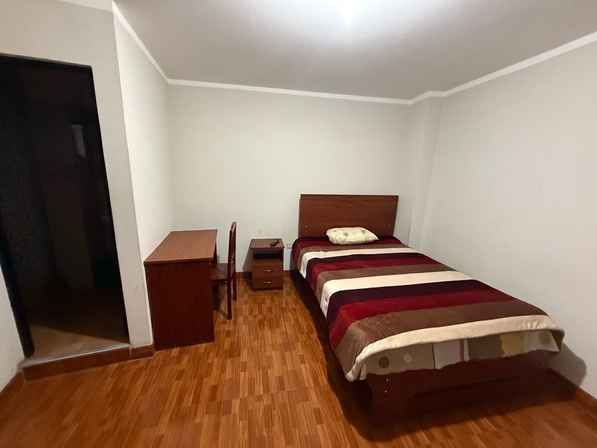 Relájate con toda la familia en este alojamiento donde la tranquilidad se respira. Contamos con otras habitaciones disponibles, también con cocina(hervidor de agua, olla arrocera, microonda, licuadora, cocina a gas ) y comedor compartida, lavadora y vista panorámica en la azotea. En el primer piso contamos con un mini market. estamos 7 minutos del aeropuerto.