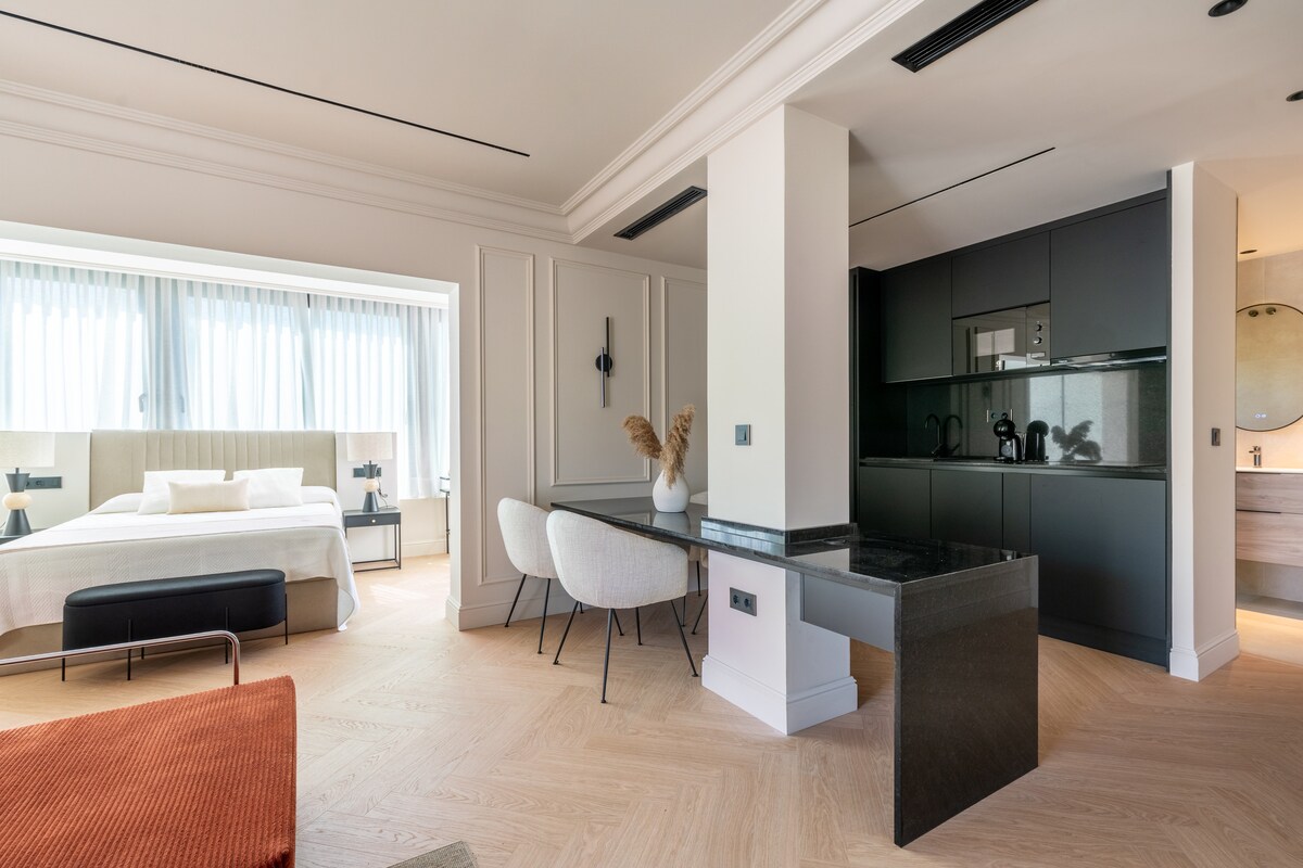 [MYLU SUITES by PUERTA CATEDRAL] Apartamento de un dormitorio ideal para familias con una ocupación máxima de 2 adultos + 1 niño de hasta 18 años. Baño privado abierto en el dormitorio. Ubicado en nuestro edificio MYLU SUITES by PUERTA CATEDRAL, un entorno privilegiado en pleno corazón de Sevilla. A pocos metros de la Catedral y del Real Alcázar, los dos monumentos mas visitados de la ciudad. Terraza de uso común en el edificio con piscina.