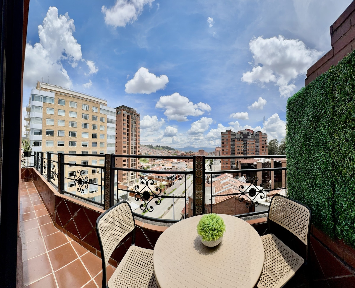 Moderno departamento en el 8º piso con espectacular vista panorámica. 2 habitaciones, TV 85”, terraza con BBQ, sofá cama y escritorio ideal para home office. Cocina equipada, lavandería, WiFi rápido y parqueadero interior. Edificio con gimnasio y excelente ubicación cerca de restaurantes, sitios turísticos y todo lo que necesitas. Además, está estratégicamente ubicado cerca de la autopista para fácil acceso. Perfecto para trabajo o descanso.