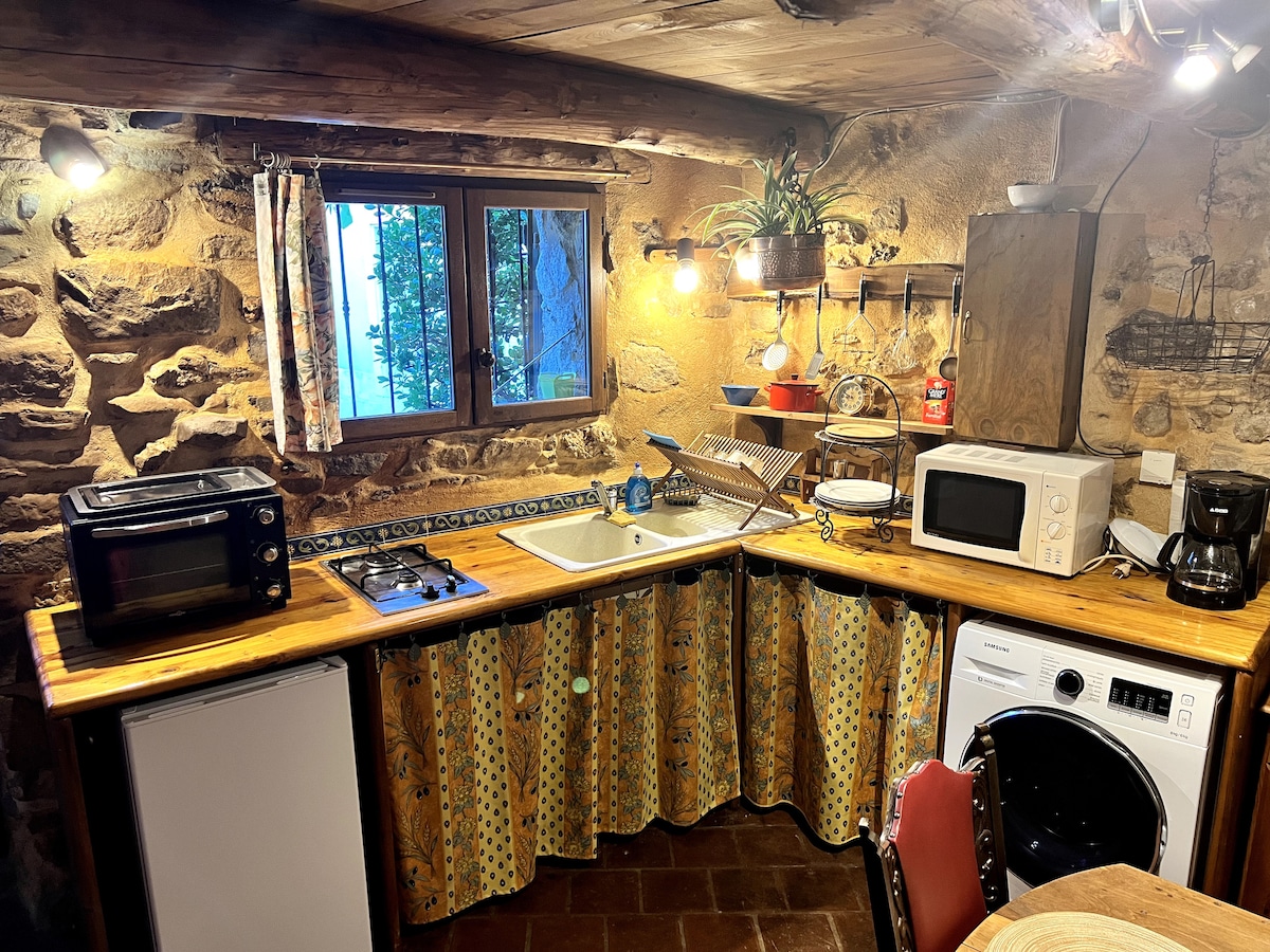 Dependencia de 40 m2 con espacios abiertos, cómoda, con una decoración cuidada. Situado en una propiedad de 6000 m2, en la que encontrará 2 casas rurales y una casa principal. Puede alojar hasta cuatro personas y da acceso directo a la piscina. Totalmente reformado y climatizado, con una pequeña cocina totalmente equipada. Cuarto de baño con bañera en isla. Plazas de aparcamiento en la propiedad con posibilidad de cargar puntualmente un vehículo eléctrico.