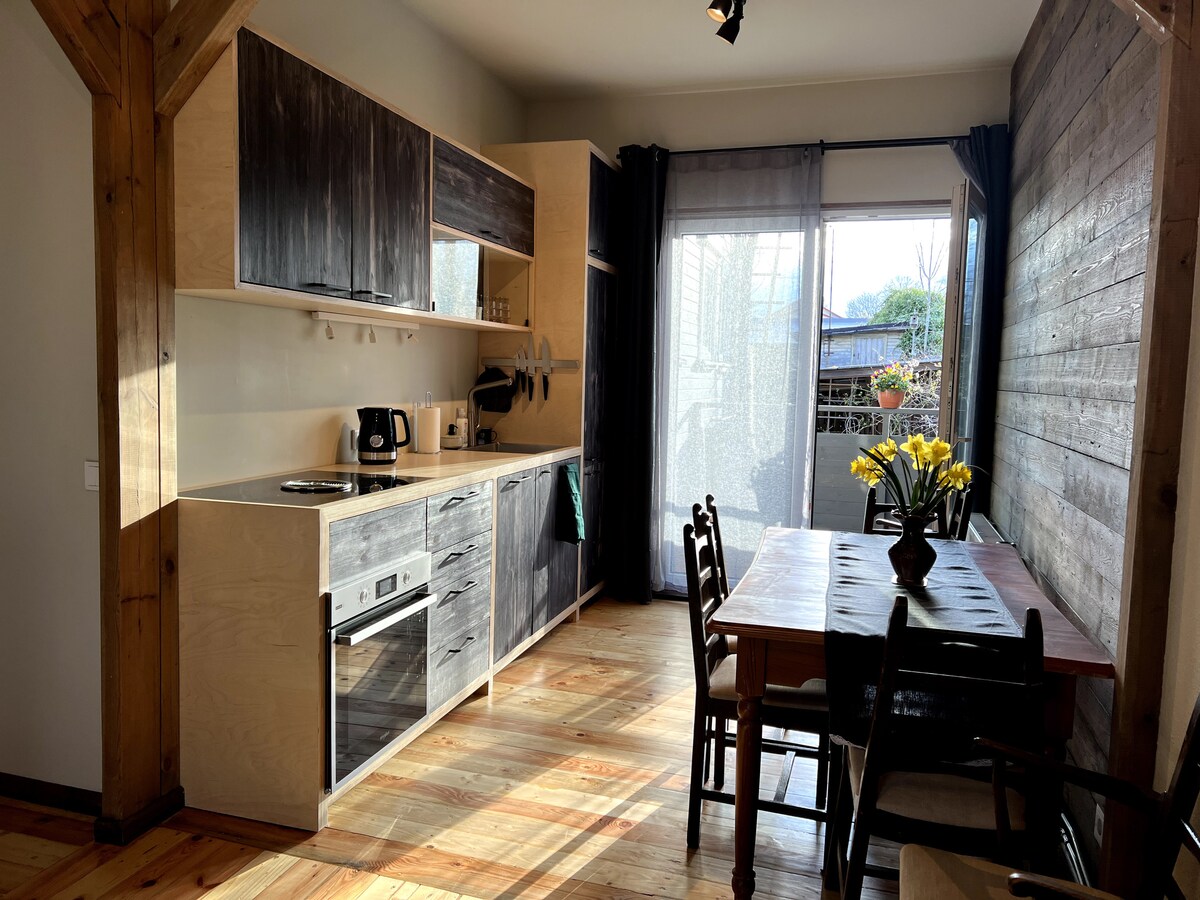Rudenī šeit ir patīkami silti, un telpu temperatūra tiek uzturēta stabila. Te mājo laika pieskāriens ar koka durvīm, grīdām un logiem. Tieši tas piešķir vietai siltumu un stāstu. Ja jums patīk īstums un dzīva vide, jūs šeit jutīsieties labi. Šī ir vieta, kur jūties gaidīts un pieņemts. Dzīvoklis ar balkonu, dārzu un draudzīgiem sunīšiem pagalmā — piemērots mierīgai atpūtai pāriem, draugiem vai ģimenēm ar bērniem no 7 gadu vecuma. Ir iespēja iznomāt divriteņus 4gab.
