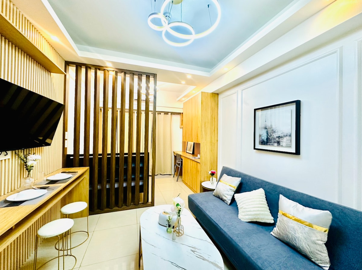Luxurious Artsy 1 Bedroom unit. Walking distance to malls, 24hrs convenience stores, restaurants, groceries, and Lively Nightlife. ♛ 4k UHD TV + A/C + Workspace ♛ Netflix, Disney+, and Youtube access ♛ 400mbps upload and download speed! ♛ Board games are provided if you wanna have fun! ♛ fresh towels, and essentials provided ♛ Kitchenwares, cooking appliances, Microwave ♛ Coffee Machines ♛ Steam Iron, Hairdryer and Water Heater
