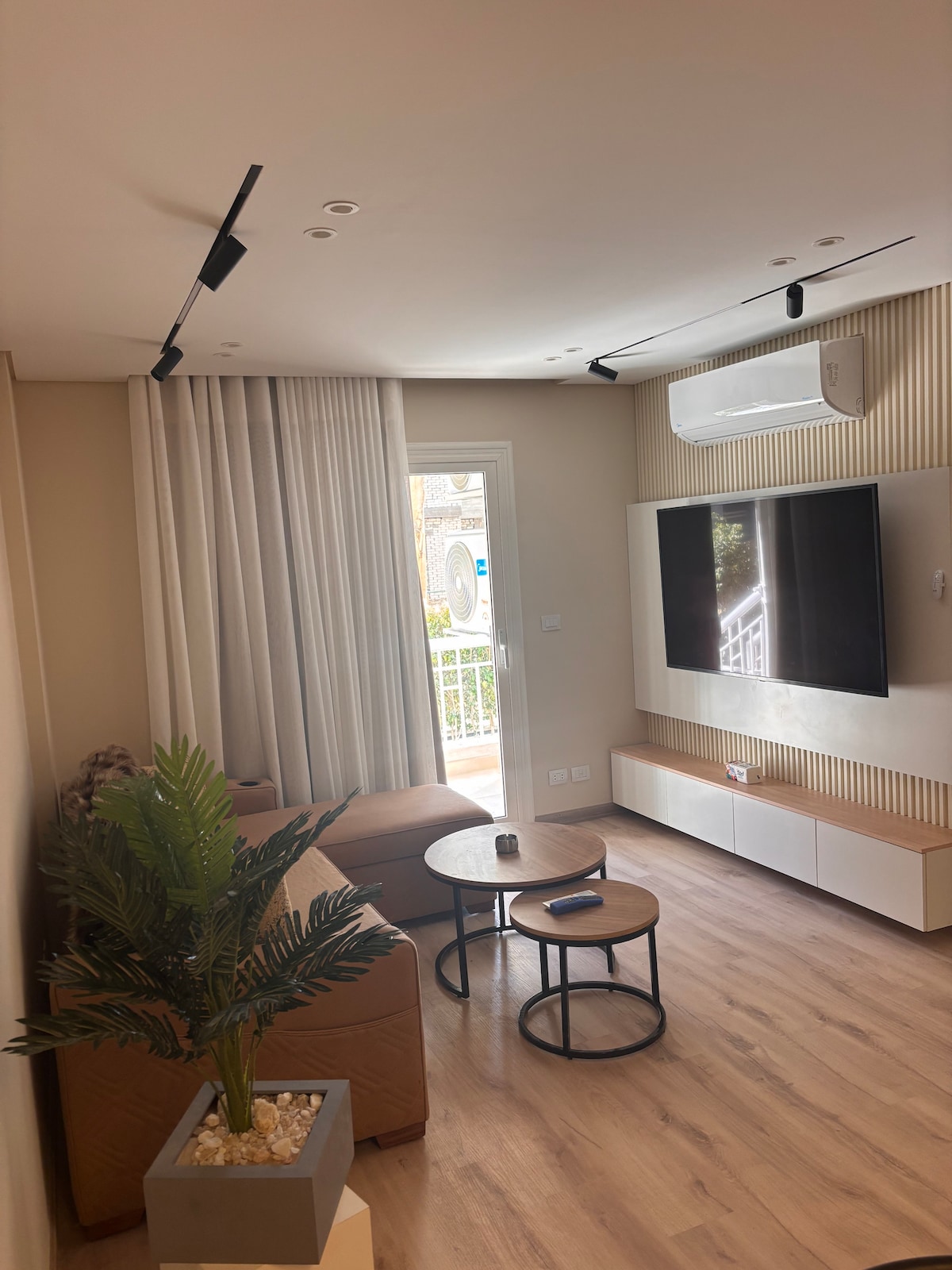 🌟 What This Place Offers • 🛏 Sleeps up to 4 guests (comfy bed + sofa bed) • ❄️ Fully air-conditioned with brand-new appliances • 💻 Optical fiber high-speed internet – perfect for work & streaming • 🍳 Fully equipped kitchen with stylish bar table • 📺 50” Smart TV in a cozy living area • 🚗 Only 4 min from Suez Road – easy access to the city • 🏡 Peaceful & friendly neighborhood