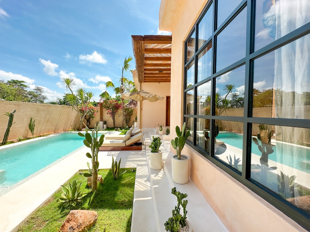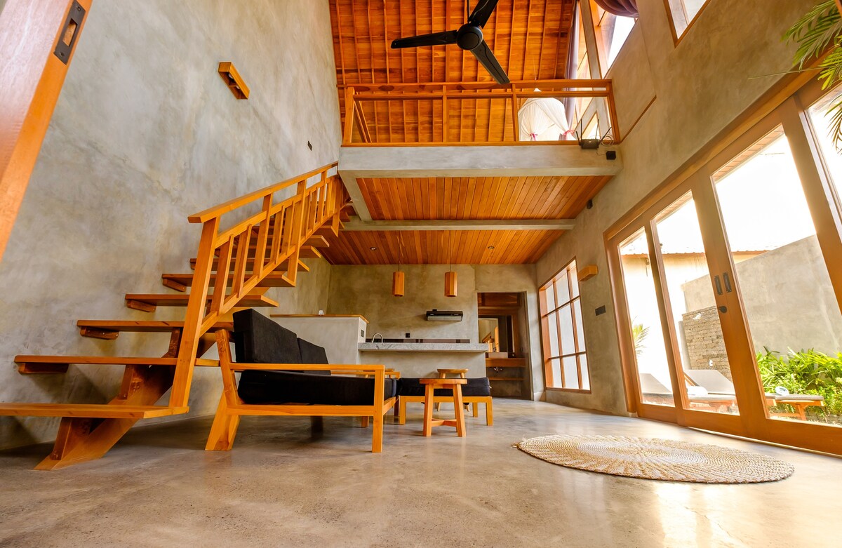 Located in a quiet and elevated area of Canggu, the villa is flood-free, even during the rainy season. A beautifully designed 2-bedroom villa that blends modern Mediterranean style with lush tropical vibes. Located in a peaceful part of Canggu, the villa is just 10 minutes from the beach and only 5 minutes to Nirvana Life, local cafés, and boutique shops. Come with your loved one, bring your friends, or spend quality time with family, the villa’s designed for easy, enjoyable stays!