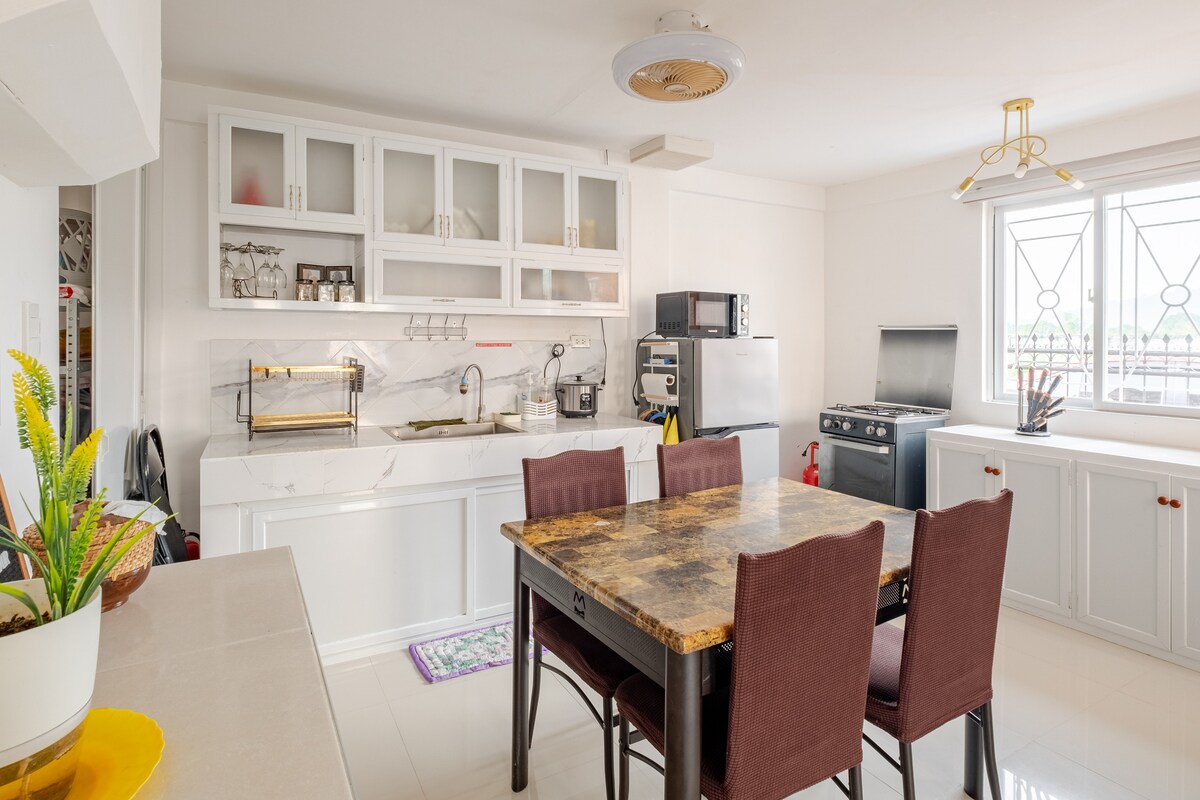 Welcome to our humble home. 💓 This one bedroom apartment is designed for comfort and relaxation, with a well-appointed kitchen and comfortable living area perfect for families, friends, and business travelers. We're also conveniently located near restaurants/fast food chain like Casa Victoria, Mcdonald’s, Jollibee, Chowking, Public Market, and Robinsons Supermarket. Enjoy a seamless stay with amenities like free Wi-Fi, a smart TV, board games, mini karaoke, and a comfortable queen-sized bed.