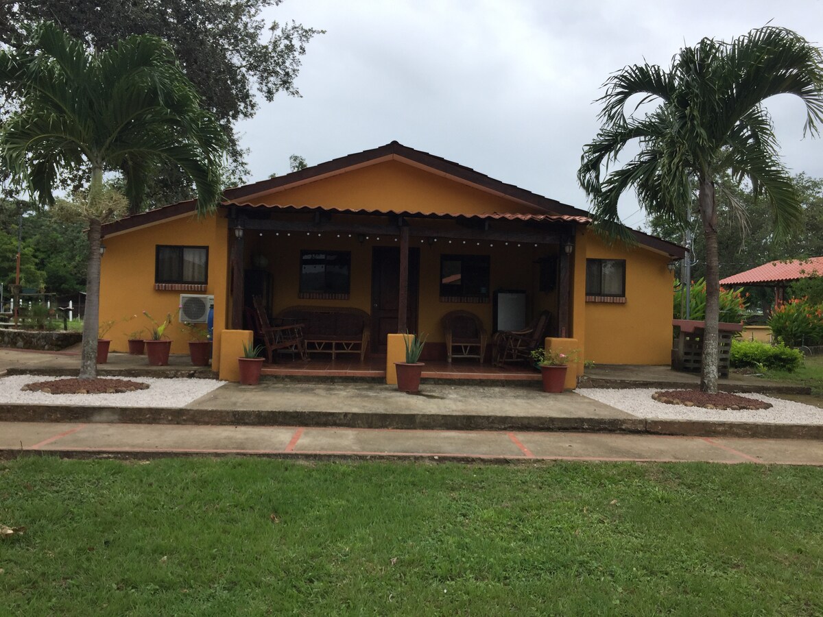Es solo una bella casa o villa ecológica, remodelada en setiembre 2016, rodeada por 8 hectáreas de terreno con muchos árboles y fauna silvestre, Internet WIFI, cocina equipada (refigerador, cocina eléctrica, horno microndas, utensilios varios, etc.), TV satelital, cancha de futbol, piscina con meat roaster coal, cuenta con río totalmente limpio proveniente del volcán. El Parque Volcán Rincón de la Vieja se ubica a 8 kilómetros de la villa.