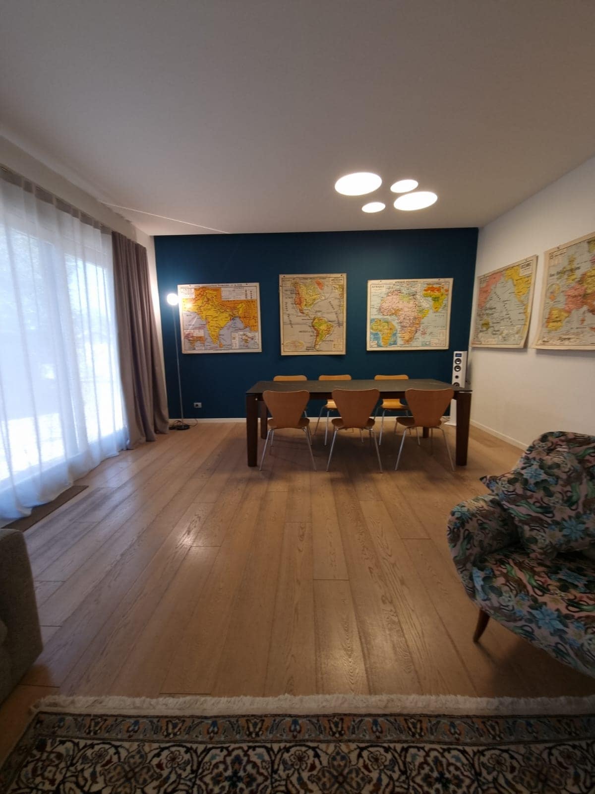 L'appartamento si trova al piano primo di un prestigioso condominio di Modena, a due passi dal centro storico, 5 minuti a piedi al teatro Storchi. L'appartamento (120mq) include 2 grandi camere da letto (con due letti ciascuna), due bagni indipendenti, una cucina abitabile, sala da pranzo e un grande soggiorno. Compreso di finestre vista parco con balcone al patio interno. Permettiamo anche di utilizzare il garage interno, che si trova nel sottosuolo del edificio, per una macchina mediana.