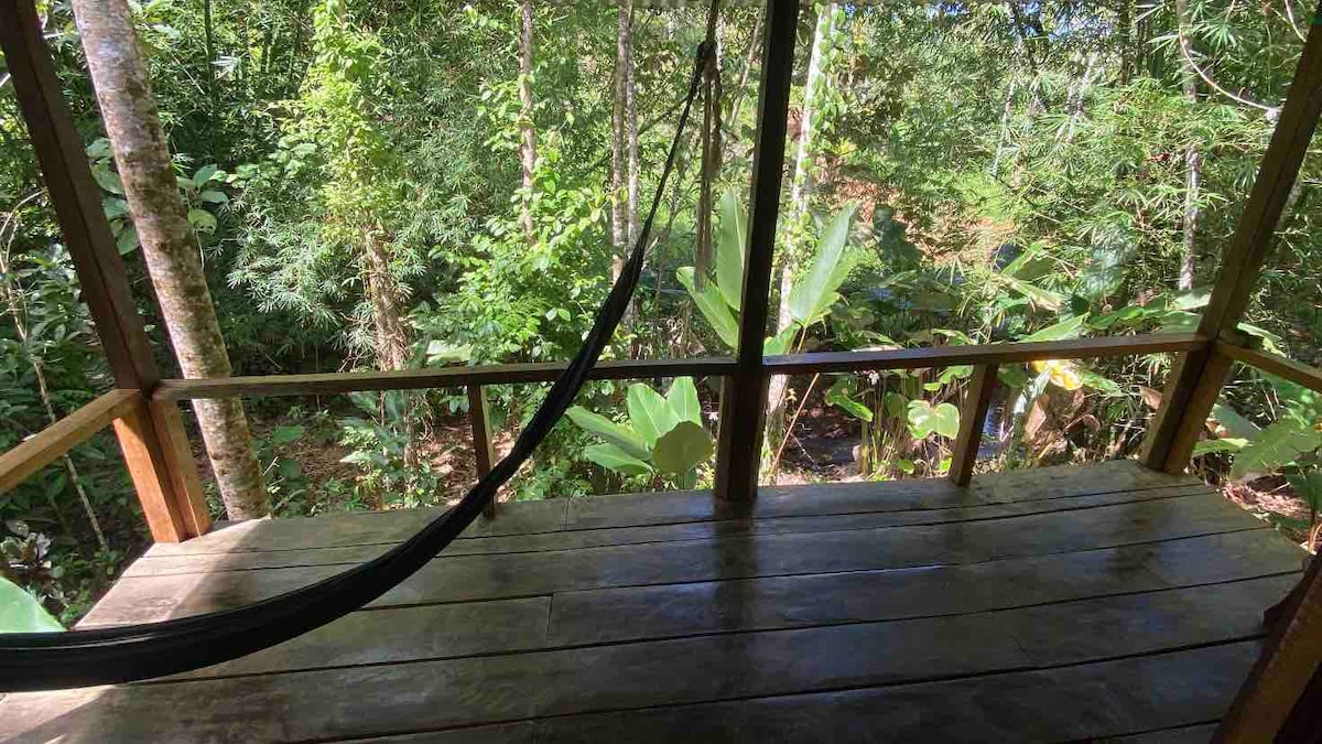A rustic and handmade cabins that let you have all the amenities of a confortable home with the adventure of being able to fully enjoy direct contact with the jungle and farm life. Just chill on the garden and be amused by the monkeys, toucans, Macaws and all other wildlife that lives arround the farm. Rustica, Artesanal, amplias y comoda que te permitira disfrutar de un ambiente tranquilo al mismo tiempo del contacto directo con la jungla y la vida en una granja ecologica