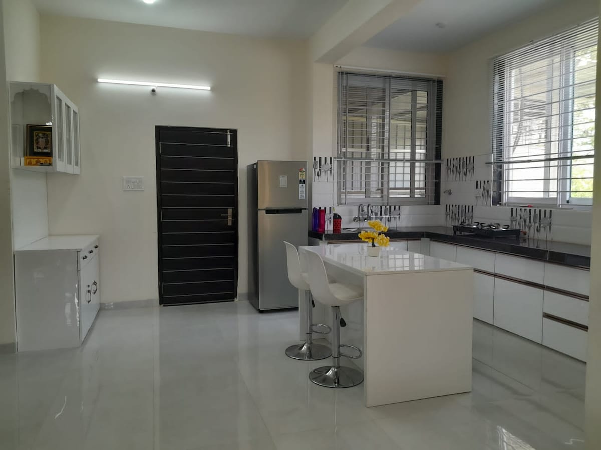 Forget your worries in this spacious 3000 sqft and serene space home,has a bright and modern feel, with polished tile floors and white walls throughout.A living area with a dark brownsofa, a dining area with a table and chairs, and a kitchen featuring white and dark cabinets. The bedrooms have large wardrobes, and there's also a balcony with a view of the surroundings. NOTE: PLEASE AVOID LOUD NOISE/MUSIC/ DANCE/ PARTYING as this flat is a part of society and Please strictly follow societyrules