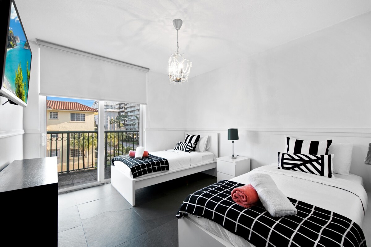 Escápate a este luminoso estudio de 49 m² en el mejor vecindario de Miami Beach, a solo pasos del océano. Todo lo que necesitas: cama King, TV de 65" con Netflix, escritorio, área de comedor y cocina italiana equipada. Lavadora/secadora en la unidad, dos piscinas, un jardín zen frente al agua y estacionamiento en el lugar ofrecen todas las comodidades. Camina a la playa con sillas y sombrilla incluidas y explora tiendas y restaurantes cercanos de Bal Harbour. ¡Perfecto para relajarse o explorar