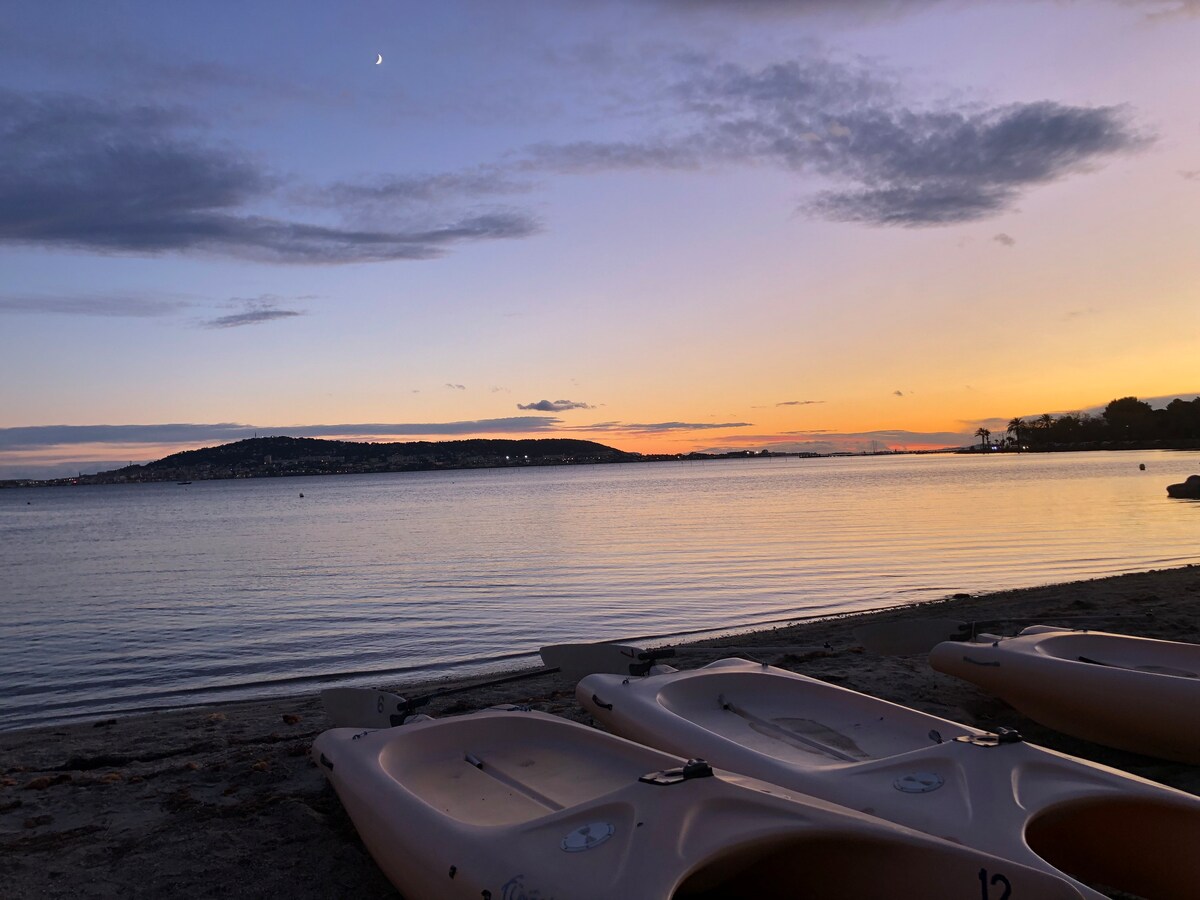 Appt de 25 m2 avec balcon et jardinet donnant un accès direct à la plage. Refait à neuf en 2024 avec toutes commodités (Box, Smart TV, enceinte Marshall, Nespresso, wc séparé, literie de qualité, etc.) et une volonté féroce que vous vous y sentiez « comme chez vous », il est très agréable à vivre. Lumineux, avec une décoration soignée, il est parfait pour un séjour en amoureux ou en famille. Depuis le jardin, équipé d'un barbecue et d’un joli bed, vous êtes face à la Grande Bleue: le rêve!