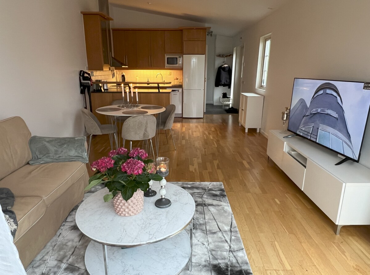 ¡Da la bienvenida a nuestro encantador departamento ubicado en Åsen! Aproximadamente a 5 minutos a pie de la estación de tren/centro de viajes (500 metros) y aproximadamente a 10-15 minutos a pie del centro de la ciudad. El departamento se encuentra en Enköping, con proximidad a todo lo que la ciudad tiene para ofrecer. El departamento tiene 55 metros cuadrados y tiene un dormitorio, baño, cocina y sala de estar. La cocina está totalmente equipada, incluida la cafetera, la máquina de cápsulas, la tostadora y el hervidor, etc. Hay toallas y artículos de higiene disponibles. Hay una silla de bebé y platos para niños disponibles, así como un sofá cama en la sala de estar.