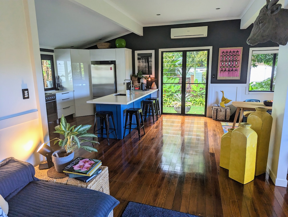 A luxury designer holiday home carefully sourced and curated with stylish eclectic furnishings. Spacious open plan living which allows for larger families or groups of up to 10 with plenty of room to relax apart or come together to enjoy each other’s company. A relaxed & private environment that embraces luxury resort atmosphere both in and outside. The abode has lush tropical gardens that envelope the property creating a peaceful & ambient atmosphere to soak in whilst you relax on your stay.