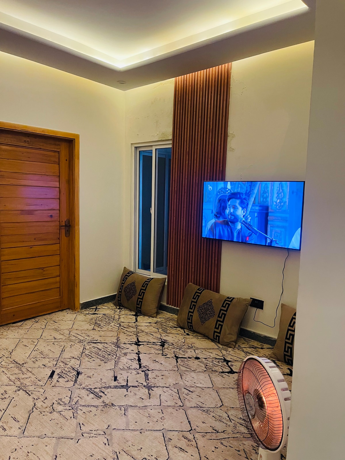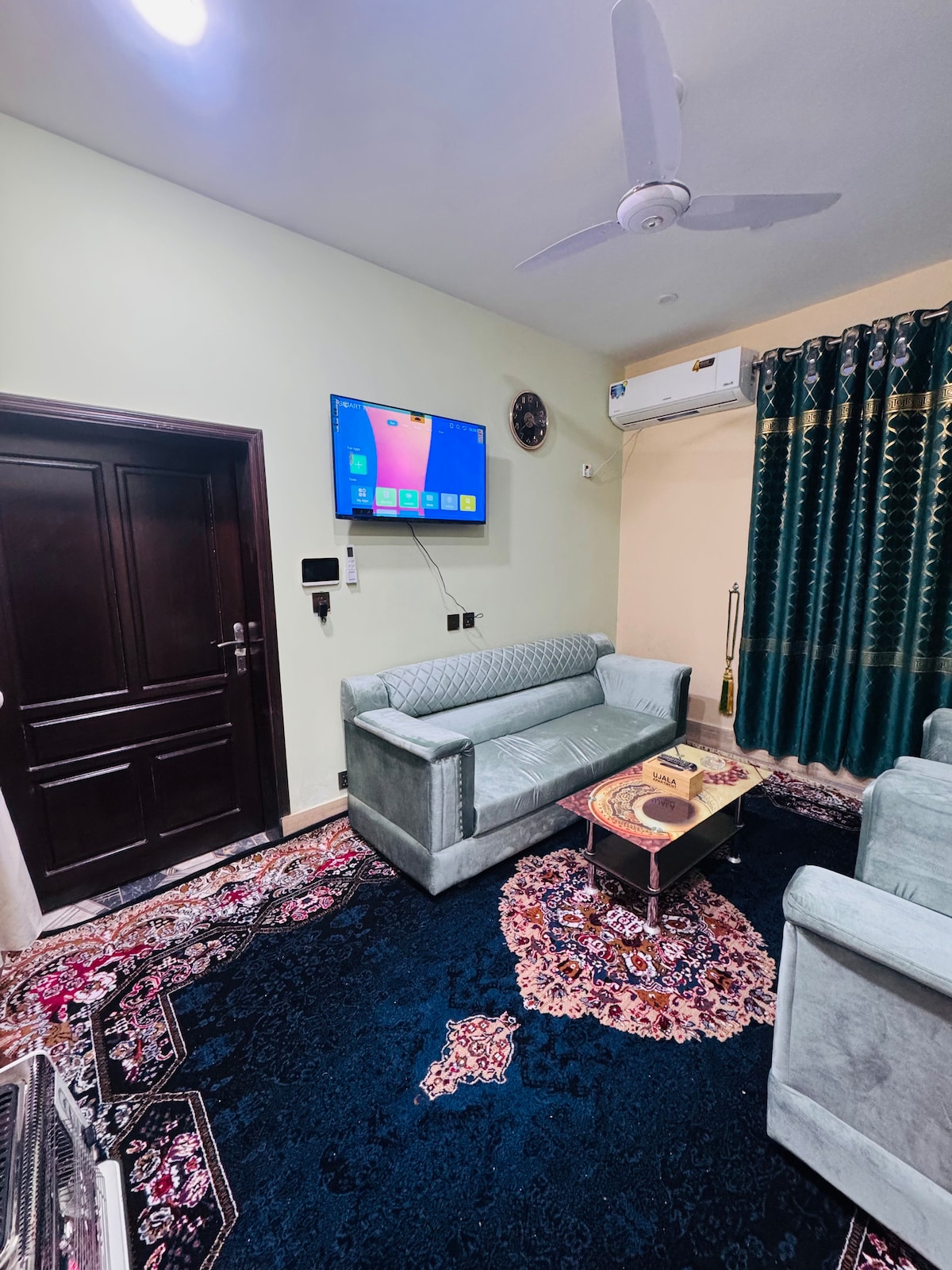 Enjoy a peaceful and fancy stay in this luxury yet budget-friendly 2-bedroom apartment located inside a secure, gated society. Sleeping Arrangements • 1 comfortable double bed • 2 sofa beds Apartment Highlights ✔ Fully equipped kitchen ✔ High-speed Wi-Fi ✔ Dedicated workspace for business ✔ Hot & cold water - 24/7 ✔ Free parking inside the society ✔ family-friendly environment 📍 Nearby Conveniences • Restaurants • Mosque • Public transport The balanced luxury, comfort, and convenience.