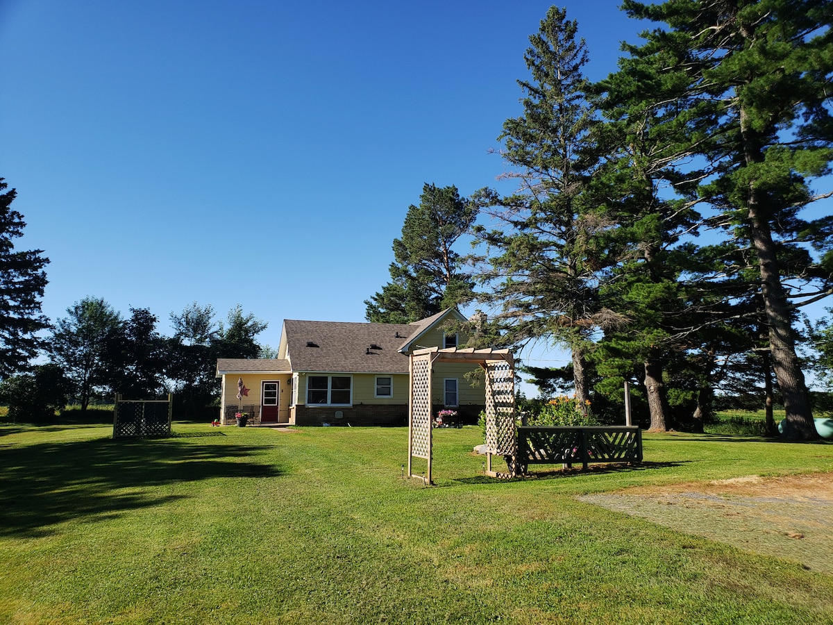 ¡Escápate al campo! Descubre «Pines» que Whisper se encuentra en la zona rural de Balsam Lake WI. Nuestra acogedora cabaña está a solo un tiro de piedra del hermoso lago Half Moon, con acceso público a un embarcadero, un muelle de pesca y una playa para nadar. Disfruta de la pesca, el kayak, el ciclismo y los paseos tranquilos por carreteras rurales. Conecta con la naturaleza y amplios espacios abiertos. Estamos ubicados en un entorno privado rodeado de campos agrícolas. ¡Imagina la vida silvestre pasando, los buceadores llamando a lo lejos y las impresionantes puestas de sol!