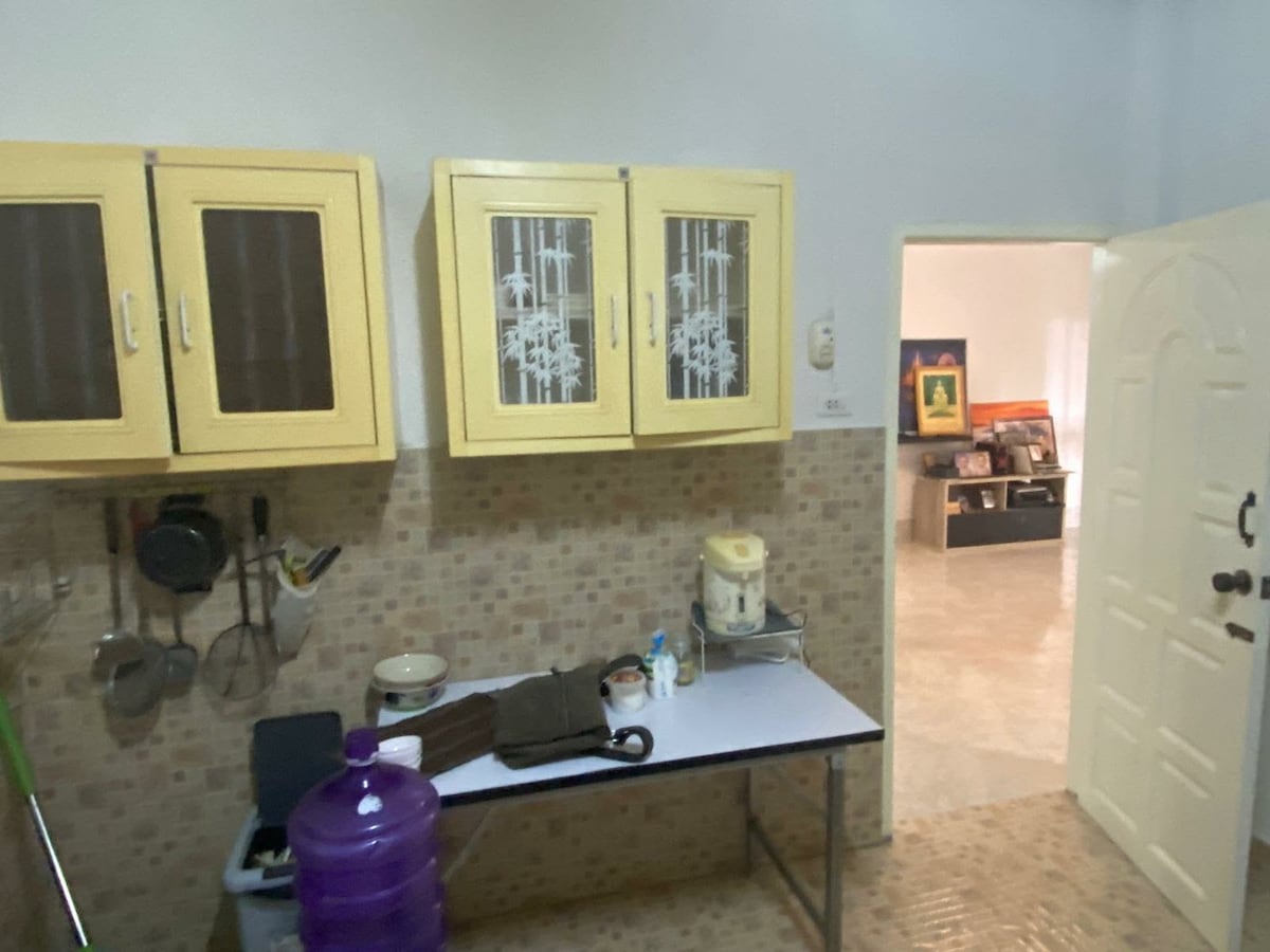 เป็นที่พักอบอุ่น บ้านขนาด 110 ตารางเมตร ที่ได้รับการปรับปรุงใหม่ที่ให้ครอบครัวรองรับให้พักได้สูงสุด 3-5 คน -ห้องนอน 2 ห้อง ห้องใหญ่เตียง 6 ฟุต +เเอร์, ห้องเล็ก 3.5 ฟุต+พัดลมเเอร์ -ห้องโถง -ระเบียงหน้าบ้าน -ห้องน้ำ 2 ห้อง + เครื่องทำน้ำอุ่น -ห้องครัว+อุปกรณ์ทำครัวครบครัน+เครื่องใช้ไฟฟ้า+เครื่องซักผ้า -โถงจอดรถ 3 คัน -Wifi ฟรี -ผักเเละผลไม้เก็บรัปทานได้ค่ะ ......ผ่อนคลายกันพร้อมหน้าในที่พักแสนสงบ