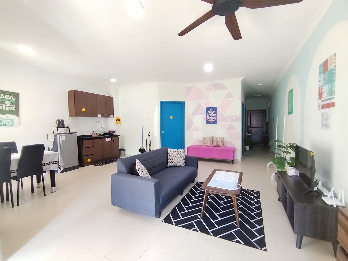El apartamento está ubicado en Desaru Utama Residence con vistas a la piscina, dentro del centro de la ciudad. ¡Un alojamiento cómodo y perfecto para familiares, grupos de amigos, parejas, viajeros de negocios y otros ! ¡Esta unidad puede alojar hasta 6 huéspedes ! 2 estacionamientos GRATUITOS Dormitorio principal. 1 cama tamaño king. Dormitorio del medio: 1 cama tamaño queen Dormitorio del medio: 1 cama individual - SKS Mall Desaru (5 minutos a pie) - Desaru Fruit Farm (10 min en auto). - Muzium Nelayan (10 min en auto). - Playa de Desaru (15 minutos en auto). - Desaru Coast Waterpark (20 min en coche).