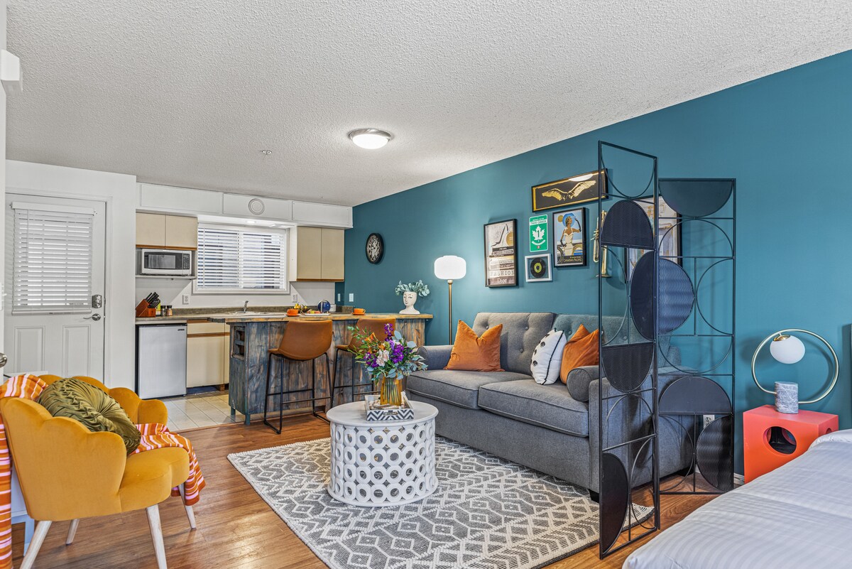 ¡Encantador alquiler de 1 dormitorio con chimenea y vistas a la montaña!