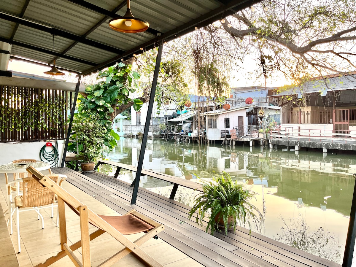 BangLuang House en Bangkok BangLuang House @Bangkok Bienvenido a BangLuang House @Bangkok. Escapa de la acelerada metrópolis de Bangkok y encuentra la vida tranquila a lo largo de nuestro lugar en Khlong Bang Luang. La habitación incluye aire acondicionado, nevera, TV y balcón directo al canal. Ofrecemos estilo, comodidad y la oportunidad de sumergirte en el ritmo de vida relajado del barrio. Con solo la habitación situada directamente en el canal. Puedes disfrutar del agradable ambiente y relajarte de verdad. <b> Atracciones cercanas </b> Casa del artista Baan Silapin. Una destacada casa de madera en Khlong Bang Luang es Baan Silapin, la casa del artista. Entre estas casas de madera se encuentra Baan Silapin, también conocida como la casa del artista. Construida alrededor de una pagoda de estilo Ayutthaya de 200 años, esta estructura restaurada de 2 plantas de más de 100 años alberga una cafetería en la primera planta, una tienda de recuerdos, así como un estudio donde los artistas de la comunidad realizan sus artesanías ajenos a las miradas curiosas. También puedes dar rienda suelta al artista que llevas dentro aprendiendo a dibujar, hacer grabados en madera y joyas. Con su encanto antiguo y todo, Baan Silapin es el lugar perfecto para pasar una tarde tranquila bebiendo café mientras lees un libro mientras pasan los barcos. เป็นห้องพักที่มีสิ่งอำนวยความสะดวกครบ แอร์ ตู้เย็น ทีวี ติดริมน้ำตกแต่งแบบไทย ร่วมสมัย โดย มีระเบียงยื่นไปในน้ำอยู่ท่ามกลางชุมชนเดิม มีการแสดงหุ่นละครเล็กที่บ้านศิลปิน ซึ่งอยู่ตรงกันข้ามฝั่งคลอง มีอาหารไทยทั้งทางเรือและในชุมชน ใกล้เซเว่น และร้านสะดวกซื้อเพียง 200 เมตร มีกิจกรรมมากมาย สามารถล่องเรือ ให้อาหารปลา เพ้นท์หน้ากาก ชมวัดที่มีอยู่หลายวัดรอบรอบชุมชน
