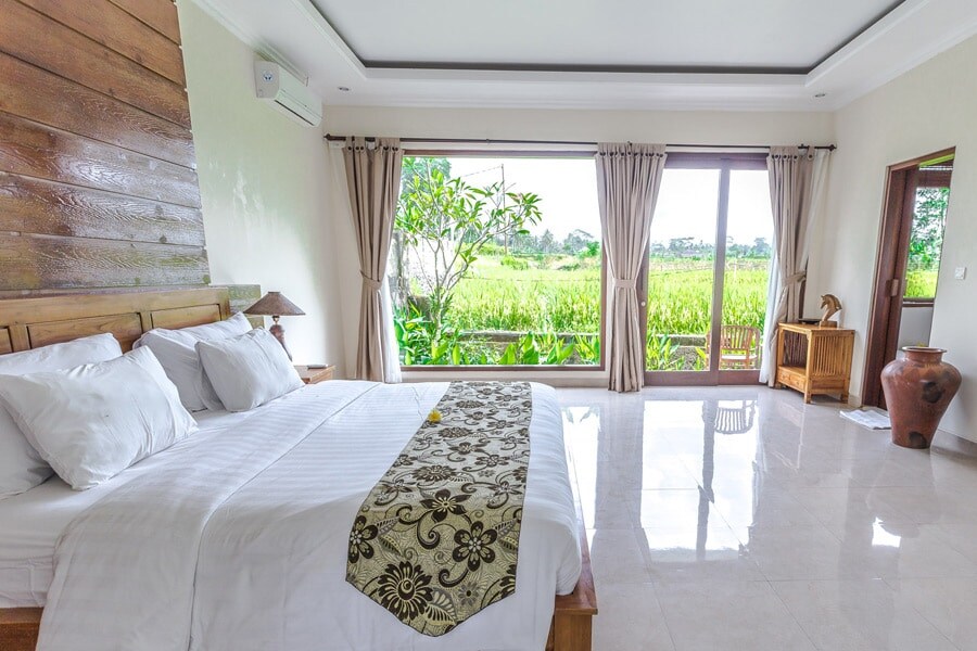 Una rara combinación de ubicación central y poca vista al campo de arroz en Ubud. Una hermosa piscina comunitaria y WIFI hacen que el lugar tenga una excelente relación calidad-precio para tus vacaciones.
