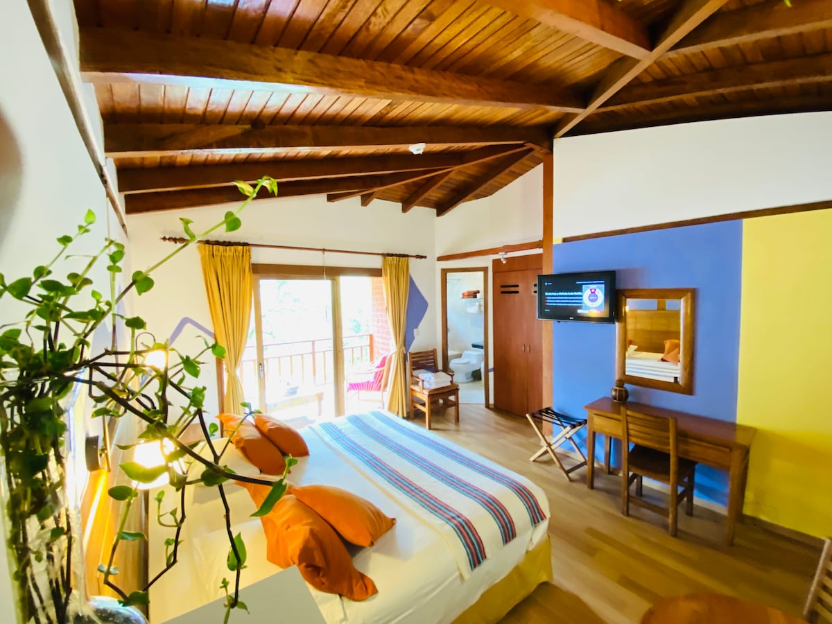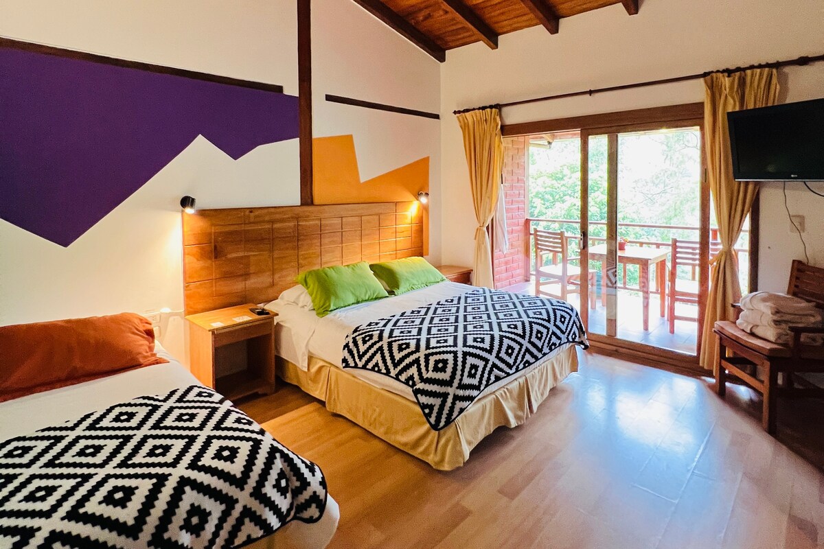 Triple room, balcony, private bathroom. One queen bed, one double bed. Mama Tungu is a hostel located between the Chamana, Ulba and El Silencio waterfalls, with trails and viewpoints. Resto Bar, covered and heated pool and jacuzzi. Giant Hammock, Tree House and more for you to spend some incredible days. Mama Tungu Bar and rest will surprise you with its proposals. Tuesday and Thursday free yoga class, Monday and Friday free walking tour.