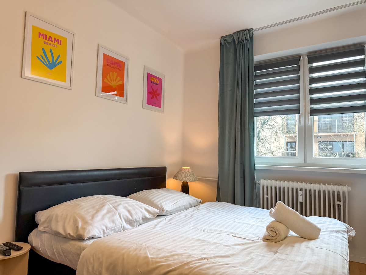 Al reservar 2 noches o más, ¡vino espumoso! Tómate un descanso y relájate en este oasis de paz. El apartamento de 60 m2 en la planta baja de una casa multifuncional es la opción correcta si quieres salir del estereotipo mientras disfrutas de un entorno tranquilo y tranquilo y duerme en una lujosa cama doble tamaño king. Un espacio modernamente amueblado acariciará tus sentidos y te hará sentir especial. La bañera frente al televisor te garantizará una experiencia de baño única.