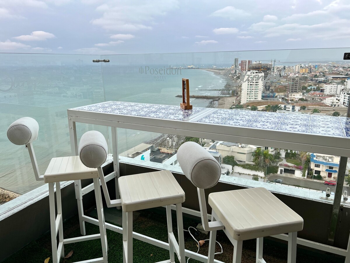 ** Por favor, lee Este anuncio es para un apartamento con vistas parciales al mar en la ciudad, en el piso 12 del lujoso Hotel Poseidón que NO INCLUYE ÁREAS SOCIALES, esa es la razón del bajo precio. Si deseas utilizar las áreas sociales durante tu estancia, las tarifas son de $ 30 por persona para estadías de hasta 3 días, 4-7 días $ 45, más de 7 días $ 50, es un pago único para toda la estancia. El hotel tiene un restaurante con vista al mar, piscina infinita, jacuzzi, gimnasio, playa privada y una espectacular azotea en la ciudad.