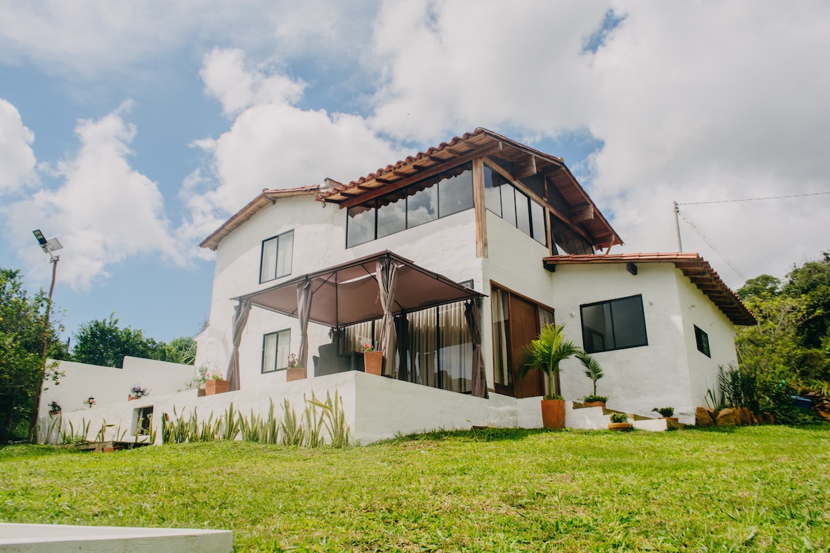🌿Disfruta una estadía única en Castañeto, una casa campestre a 1km del pueblo. Piscina privada pequeña,turco, ducha al aire libre, chimenea jardines floridos, una vista espectacular. Perfecta para descansar, conectarte con la naturaleza y disfrutar del clima fresco. Aquí encontrarás Tranquilidad, privacidad, y espacios pensados para compartir en familia, amigos, o pareja. juegos de mesa, pingpong 4 habitaciones con baño privado. Vive una experiencia auténtica en Barichara con verdadero encanto✨