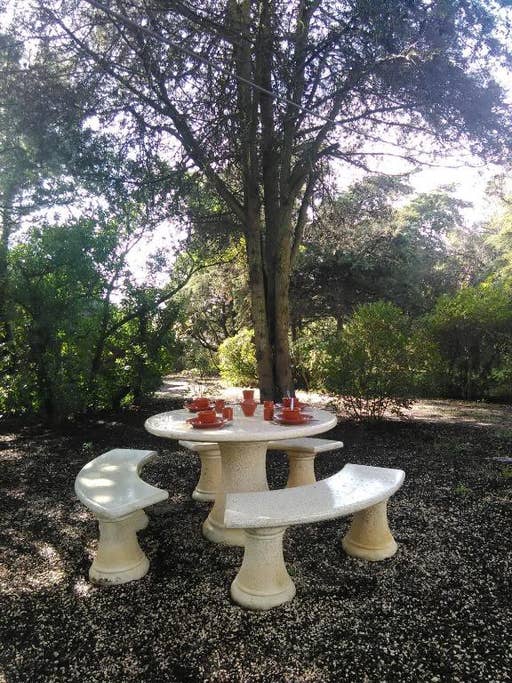 El alojamiento es una experiencia única. Las cabañas y las habitaciones están situadas entre el bosque de alcornoques y están rodeadas de un paisaje de ríos, jardines y naturaleza. Esta casa de campo, hecha de madera y tierra, parece una casa del árbol. Con baño.