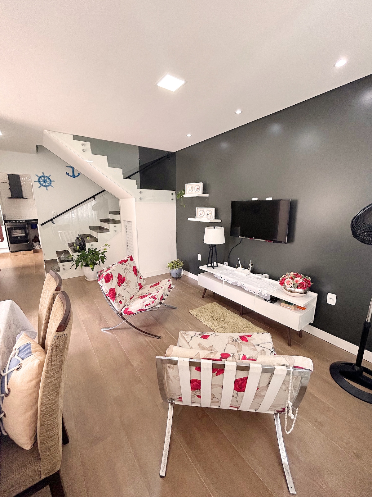 Sossego para su familia a 160 metros de la playa y a 15 minutos de Beto Carrero (en auto). Casa grande con 125 m2. Terraza cubierta con barbacoa de carbón. Nuevo Ares acondicionado en todas las habitaciones y ventilador de techo en la sala de estar. Cocina con estufa, horno eléctrico, microondas, 2 refrigeradores, filtro de agua fría, cafetera, hervidor eléctrico, sandwichera, lavadora. Garaje cubierto para 2 coches + 1 coche pequeño en el patio. Restaurantes, panaderías, mercados y farmacias cercanos, para caminar.