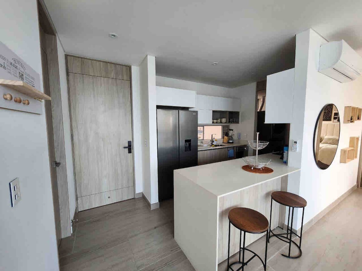 Moderno aparta-estudio ubicado en uno de los barrios más exclusivos de Barranquilla cercano a clínicas *Check-in y Check-out flexible *WiFi 900 Megas *1 habitación con cama Queen y aire acondicionado. *Sala con sofá cama y aire acondicionado. *Cocina equipada con utensilios, electrodomésticos básicos y lavadora. *Piscina, sauna, turco y Rooftop. *Gimnasio Smartfit cerca. *Estacionamiento privado gratuito. *Ubicación ideal: Cerca de centros comerciales, principales clínicas y zonas turísticas.
